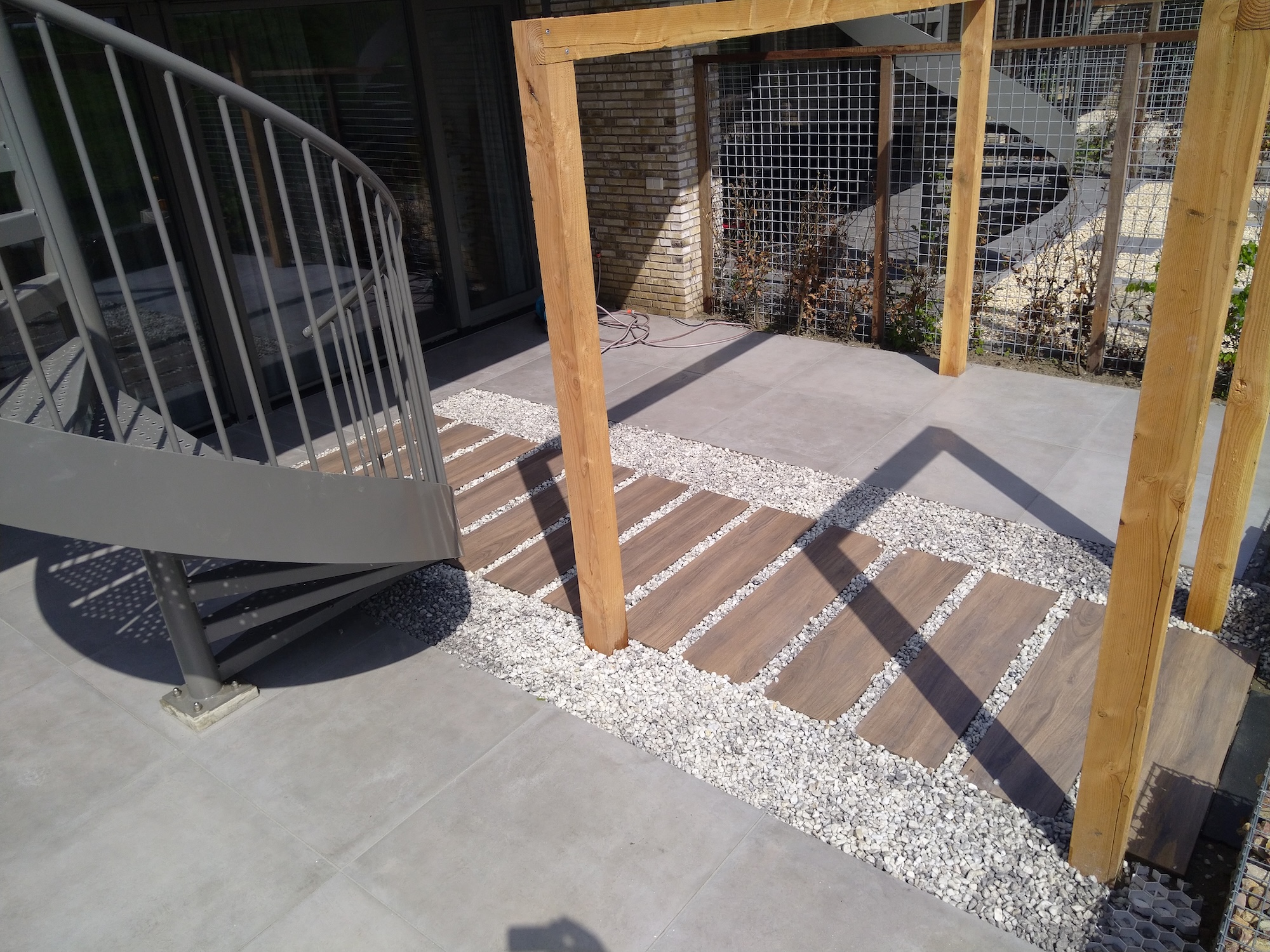 We werken met onder andere betontegels, gebakken bestrating, natuursteen en keramiek.
